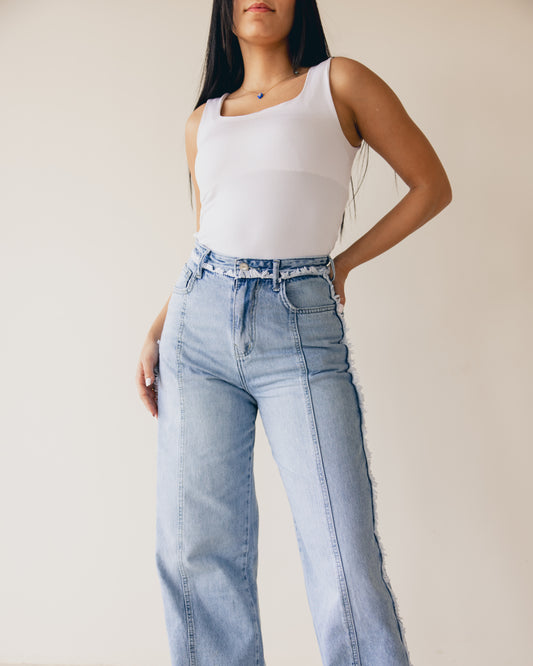 Blue Waist Fringe Jeans